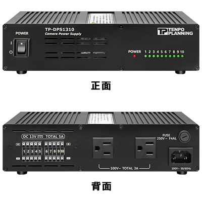 ・10台のカメラ(DC12V)と録画機・モニター(AC100~240V)に電源供給可能