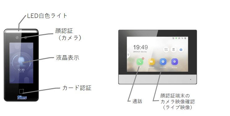 シンプルなデザイン 顔認証端末、ビデオインターコムとも施設の設置場所になじむ、コンパクトでスマートなデザインを採用しています。